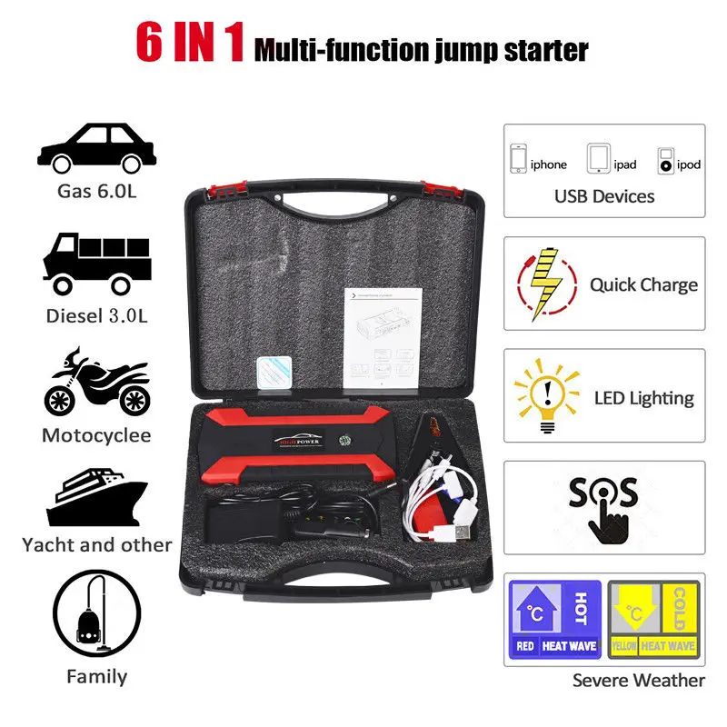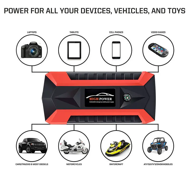 Galery for 89800mAh Car Jump Starter Pack Booster LCD 4 USB Charger Battery Power Bank New for Car Battery Cha