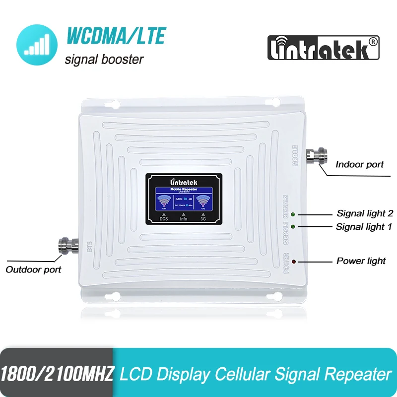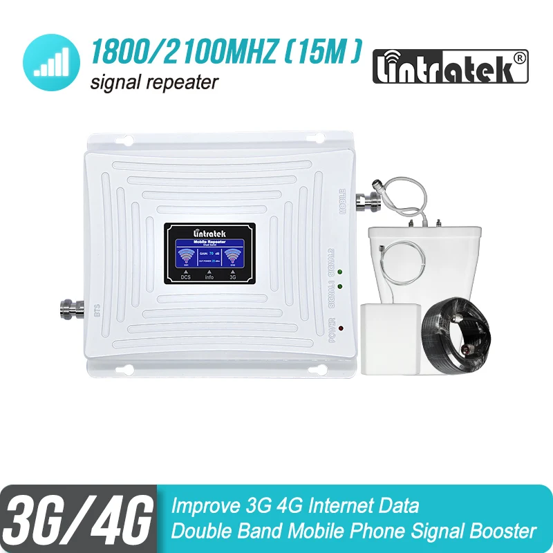 Luxury Lintratek 3G 4G 1800 2100 MHz Cell Phone Signal Booster DCS Band 3 1800 WCDMA Band 1 2100 Double Ba