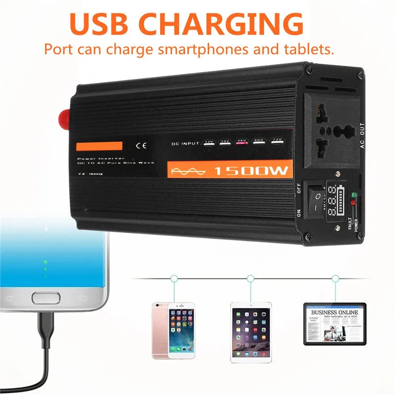 Luxury 1500W Pure Sine Wave Inverter DC12V/24V/48V To AC220V 50HZ Power Converter Booster For Car Inverter